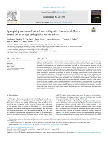 Synergizing weave-architected wettability with hierarchical fibrous assemblies to design hydrophobic woven fabrics.