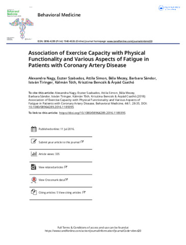 AssociationofExerciseCapacitywithPhysicalFunctionalityandVariousAspectsofFatigueinPatientswithCoronaryArteryDisease.pdf - Megjelent verzió Download (729kB) | Előnézet |