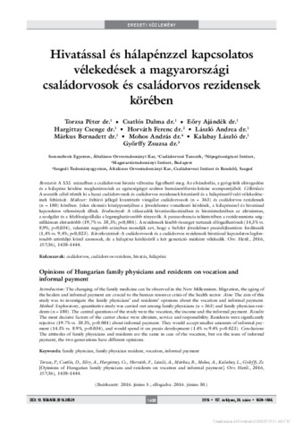 Hivatással és hálapénzzel kapcsolatos vélekedések a magyarországi családorvosok és családorvos rezidensek körében.