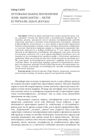 Szabó Gábor: Путовање накрај пограничне зоне: Имре Кертес : Имре Кертес – Петер Естерхази: Један догађај.