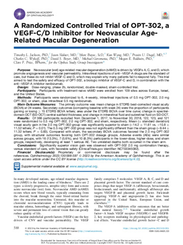 A Randomized Controlled Trial of OPT-302, a VEGF-C/D Inhibitor for Neovascular Age-Related Macular Degeneration.