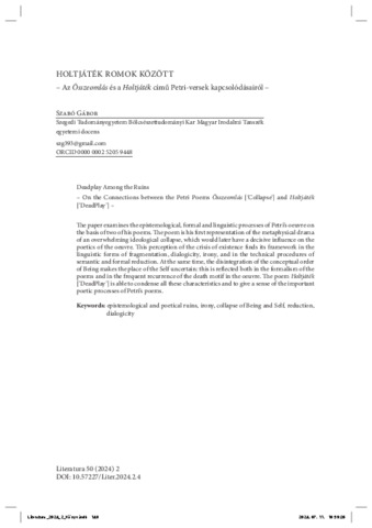 Holtjáték romok között : Az Összeomlás és a Holtjáték című Petri-versek kapcsolódásairól.