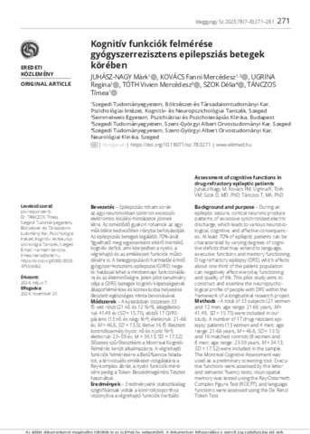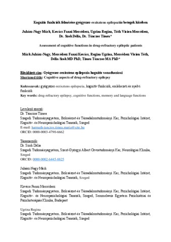Kognitív funkciók felmérése gyógyszerrezisztens epilepsziás betegek körében [Assessment of cognitive functions in drug-refractory epileptic patients].