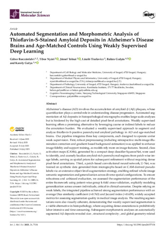 Automated Segmentation and Morphometric Analysis of Thioflavin-S-Stained Amyloid Deposits in Alzheimer's Disease Brains and Age-Matched Controls Using Weakly Supervised Deep Learning.