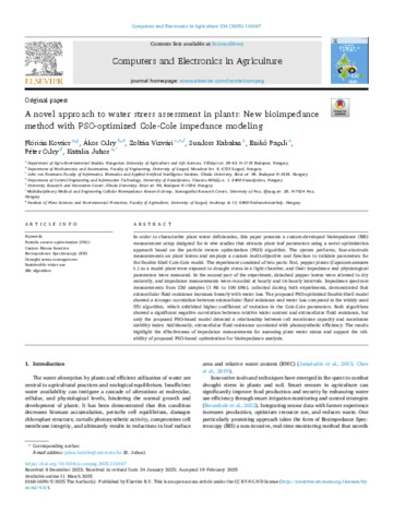 A novel approach to water stress assessment in plants: New bioimpedance method with PSO-optimized Cole-Cole impedance modeling.