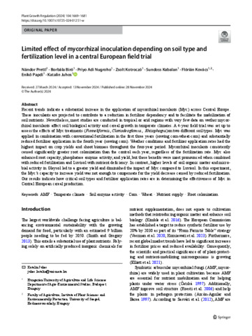 Limited effect of mycorrhizal inoculation depending on soil type and fertilization level in a central European field trial.