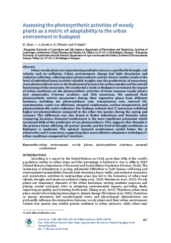 Assessing the photosynthetic activities of woody plants as a metric of adaptability to the urban environment in Budapest.