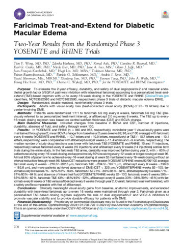 Faricimab Treat-and-Extend for Diabetic Macular Edema: Two-Year Results from the Randomized Phase 3 YOSEMITE and RHINE Trials.