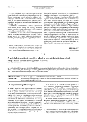 A mobiltelefonon tárolt személyes adatokra vezetett kutatás és az adatok lefoglalása az Európai Bíróság ítélete fényében.