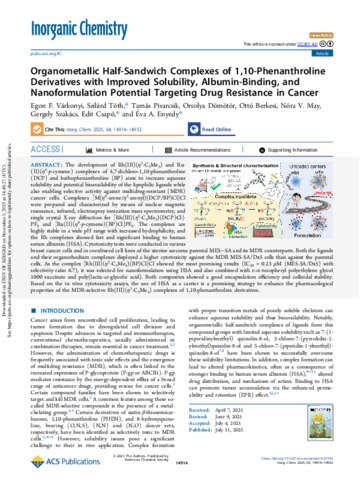 Organometallic Half-Sandwich Complexes of 1,10-Phenanthroline Derivatives with Improved Solubility, Albumin-Binding, and Nanoformulation Potential Targeting Drug Resistance in Cancer.