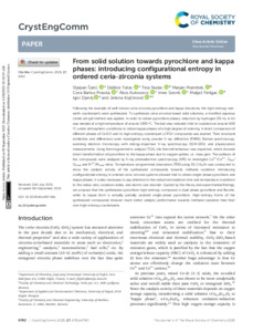 From solid solution towards pyrochlore and kappa phases: introducing configurational entropy in ordered ceria-zirconia systems.