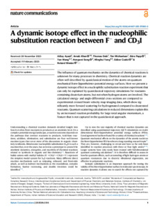 A dynamic isotope effect in the nucleophilic substitution reaction between F- and CD3I.