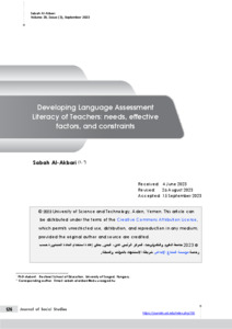 Developing Language Assessment Literacy of Teachers: needs, effective factors, and constraints.