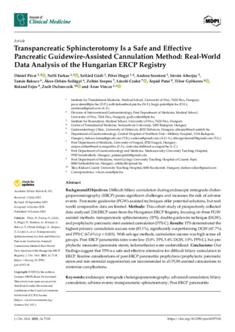 Transpancreatic Sphincterotomy Is a Safe and Effective Pancreatic Guidewire-Assisted Cannulation Method: Real-World Data Analysis of the Hungarian ERCP Registry.