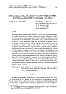 Analiza Zak. članka XXXIV. iz 1873. o izmjenama i dopunama Hrvatsko-ugarske nagodbe.