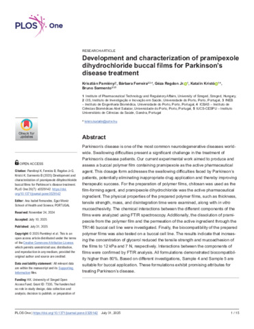 Development and characterization of pramipexole dihydrochloride buccal films for Parkinson’s disease treatment.