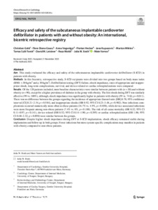 Efficacy and safety of the subcutaneous implantable cardioverter defibrillator in patients with and without obesity: An international, bicentric retrospective registry.