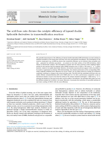 The acid/base ratio dictates the catalytic efficiency of layered double hydroxide derivatives in transesterification reactions.