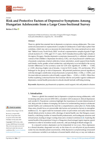 Risk and Protective Factors of Depressive Symptoms Among Hungarian Adolescents from a Large Cross-Sectional Survey.