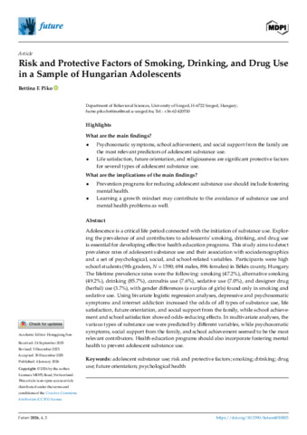 Risk and Protective Factors of Smoking, Drinking, and Drug Use in a Sample of Hungarian Adolescents.