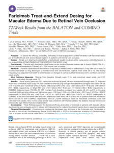 Faricimab Treat-and-Extend Dosing for Macular Edema Due to Retinal Vein Occlusion. 72-Week Results from the BALATON and COMINO Trials.