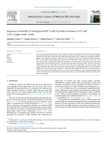 Sequence variability of Hungarian RSV G and F proteins between 2017 and 2023: single-center study.