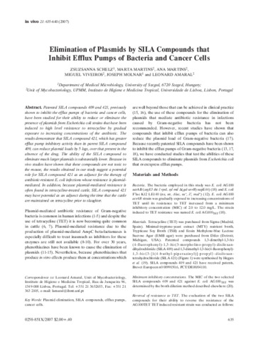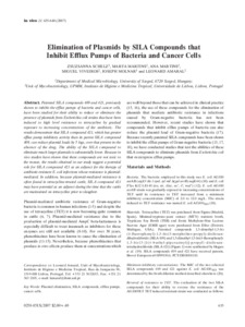 Elimination of Plasmids by SILA compounds that inhibit efflux pumps of bacteria and cancer cells.