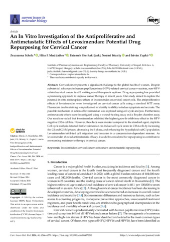 An In Vitro Investigation of the Antiproliferative and Antimetastatic Effects of Levosimendan: Potential Drug Repurposing for Cervical Cancer.