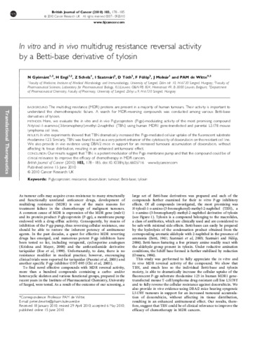 Gyemant N.; Engi Helga; Schelz Zsuzsanna; Szatmári István; Toth D.; Fülöp Ferenc; Molnár József; de Witte PAM: