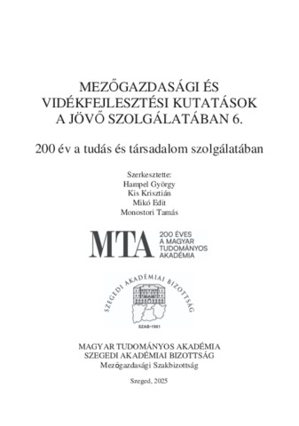 Mezőgazdasági és vidékfejlesztési kutatások a jövő szolgálatában 6. : 200 év a tudás és társadalom szolgálatában.