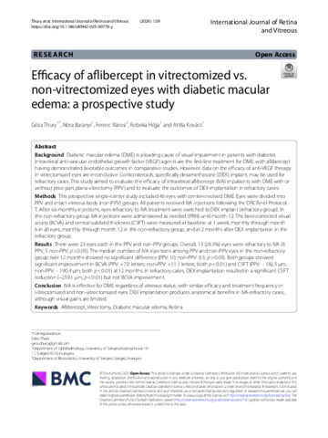 Efficacy of aflibercept in vitrectomized vs. non-vitrectomized eyes with diabetic macular edema : a prospective study.