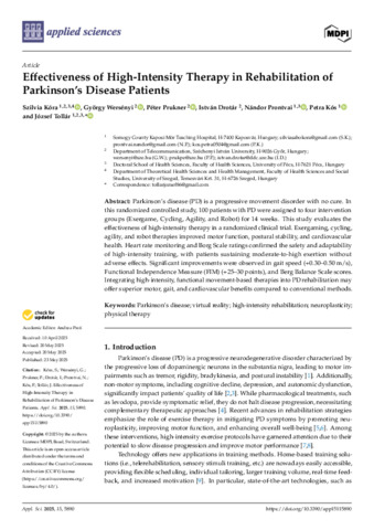 Szabó-Kóra Szilvia; Wersényi György; Prukner Péter; Drotár István; Prontvai Nándor; Kós Petra; Tollár József: Effectiveness of High-Intensity Therapy in Rehabilitation of Parkinson’s Disease Patients.