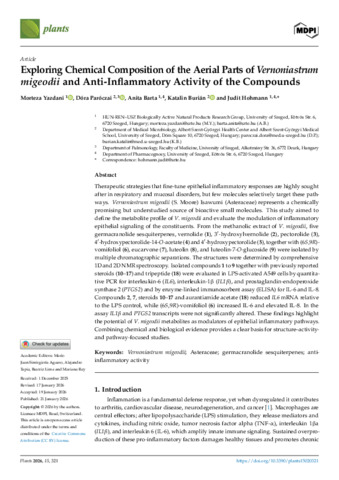 Yazdani Morteza; Paróczai Dóra; Barta Anita; Burián Katalin; Hohmann Judit: Exploring Chemical Composition of the Aerial Parts of Vernoniastrum migeodii and Anti-Inflammatory Activity of the Compounds.