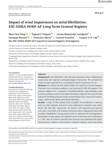 Impact of renal impairment on atrial fibrillation : ESC-EHRA EORP-AF Long-Term General Registry.
