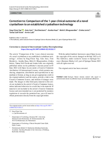 Correction to: Comparison of the 1-year clinical outcome of a novel cryoballoon to an established cryoballoon technology : (Journal of Interventional Cardiac Electrophysiology, (2022), 64, 3, (563-564), 10.1007/s10840-022-01262-5).
