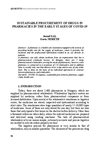 Sustainable procurement of drugs is pharmacies in the early stages of COVID-19.