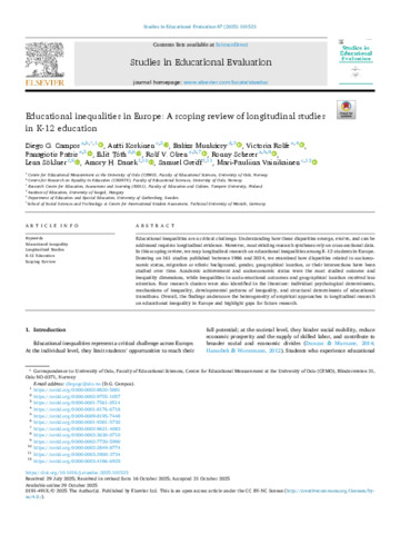Educational inequalities in Europe: A scoping review of longitudinal studies in K-12 education.