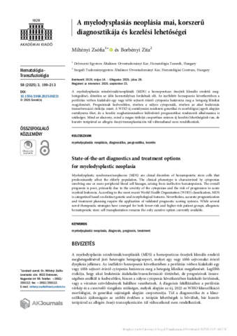 A myelodysplasiás neoplásia mai, korszerű diagnosztikája és kezelési lehetőségei.