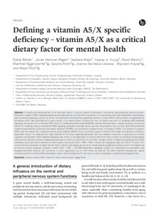 Bánáti Diána; Hellman-Regen Julian; Mack Isabelle; Young Hayley A.; Benton David; Eggersdorfer Manfred; Rohn Sascha; Dulinska-Litewka Joanna; Krezel Wojciech; Ruehl Ralph: Defining a vitamin A5/X specific deficiency - vitamin A5/X as a critical dietary factor for mental health.