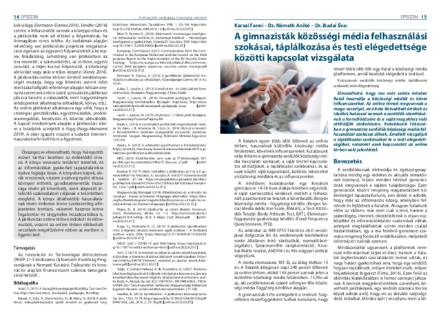 A gimnazisták közösségi média felhasználási szokásai, táplálkozása és testi elégedettsége közötti kapcsolat vizsgálata.