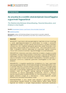 Dinnyés Katalin Julianna; Lovai Fruzsina; Simon Anna Kata; Gulyás Judit: Az anyatej és a szülők edukációjának összefüggése a gyermek fogazatával.