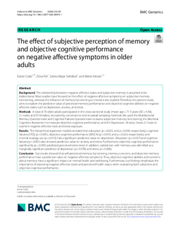The effect of subjective perception of memory and objective cognitive performance on negative affective symptoms in older adults.