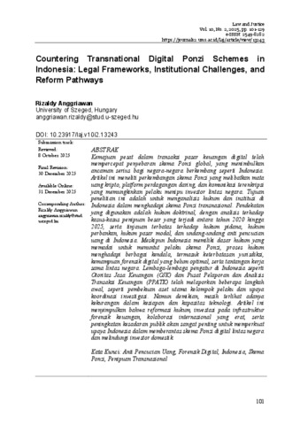Countering Transnational Digital Ponzi Schemes in Indonesia: Legal Frameworks, Institutional Challenges, and Reform Pathways.
