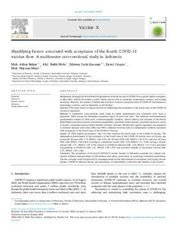 Identifying factors associated with acceptance of the fourth COVID-19 vaccine dose: A multicentre cross-sectional study in Indonesia.