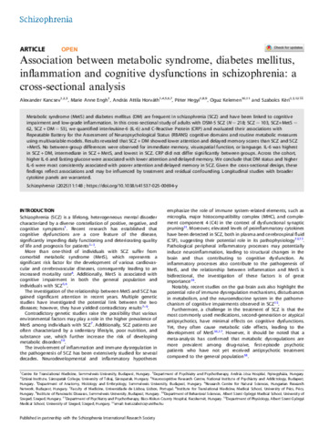 Association between metabolic syndrome, diabetes mellitus, inflammation and cognitive dysfunctions in schizophrenia: a cross-sectional analysis.