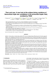 Borkovits Tamás; Rappaport S.A.; Mitnyan Tibor; Bíró Imre Barna; Csányi István; Forgácsné Dajka Emese; Forró Adrienn; Hajdu Tamás; Seli Bálint Attila; Sztakovics János; Goblyos A.; Pál András: Then and now: A new look at the eclipse timing variations of hierarchical triple star candidates in the primordial Kepler field, revisited by TESS.