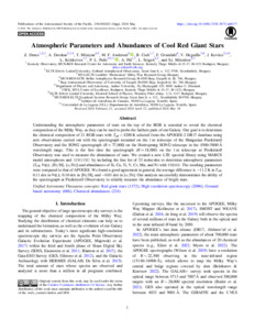 Atmospheric Parameters and Abundances of Cool Red Giant Stars.