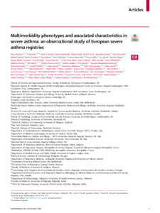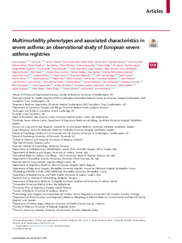 Freeman Anna; Rink Saša; Bansal Aruna T.; Frankemölle Betty; Singh Mehar; Sont Jacob K.; Bossios Apostolos; Ainsworth Ben; Hyland Michael; Chaudhuri Rekha; Matisa Dace; Mihaltan Florin; Spanevello Antonio; Heffler Enrico; Adcock Ian; Zappa Martina; Canonica Giorgio Walter; Brusselle Guy; Bourdin Arnaud; Maria Luigia Costanzo Giulia Anna; Horvath Ildiko; Lúðvíksdóttir Dóra; Principe Stefania; Kopač Peter; Loureiro Cláudia Chaves; Siddiqui Salman; Egesten Arne; Kalinauskaite-Zukauske Virginija; Dimic-Janjic Sanja; Roberts Graham; Paróczai Dóra; et al: Multimorbidity phenotypes and associated characteristics in severe asthma: an observational study of European severe asthma registries.