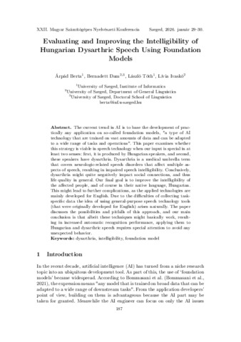 Berta Árpád; Dam Bernadett; Tóth László; Ivaskó Lívia: Evaluating and Improving the Intelligibility of Hungarian Dysarthric Speech Using Foundation Models.