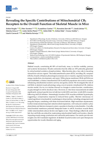 Revealing the Specific Contributions of Mitochondrial CB1 Receptors to the Overall Function of Skeletal Muscle in Mice.
